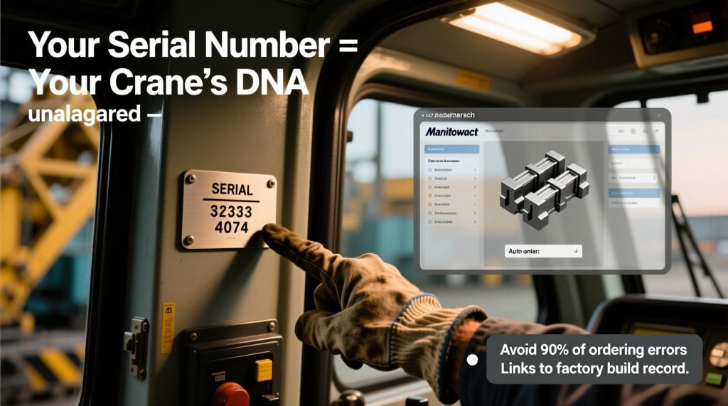 By providing the serial number to a crane parts supplier, you enable them to access Manitowoc’s parts catalog and pinpoint the exact pump model for your crane. This step eliminates guesswork and prevents most ordering mistakes.