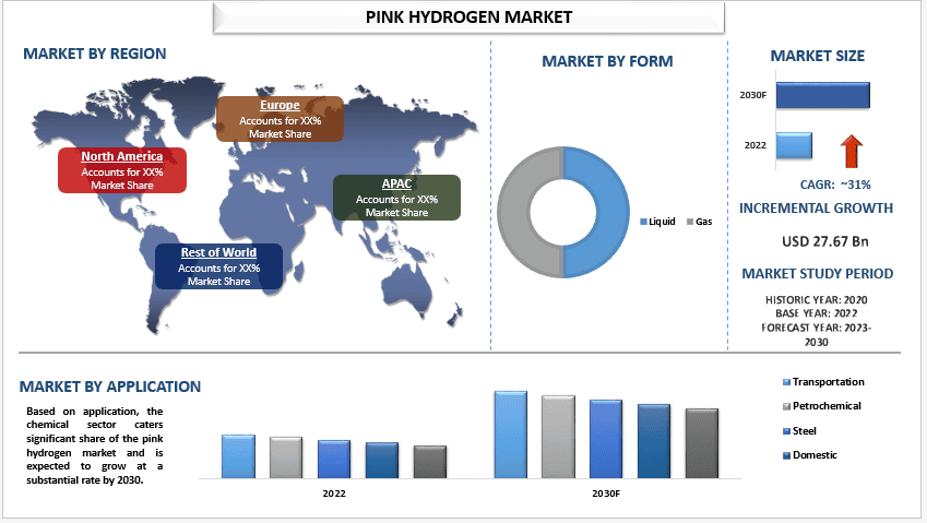 Global Pink Hydrogen Market was valued at USD 3.32 Billion in 2022 and is expected to grow a CAGR of 31% during the forecast period (2023-2030).