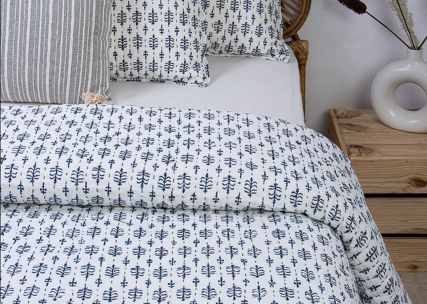 Blending traditional stitching with contemporary cotton fabrics, these quilts match global interior trends.